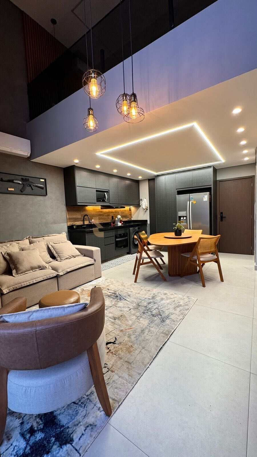 Este loft duplex mobiliado, para alugar no residencial Citizen Home, conta com 76m² de área privativa, ambientes integrados e acabamento moderno. No piso inferior, sala integrada com cozinha, lavabo e varanda gourmet com churrasqueira a gás. No piso superior, suíte ampla com closet. Totalmente decorado e equipado, pronto para morar.