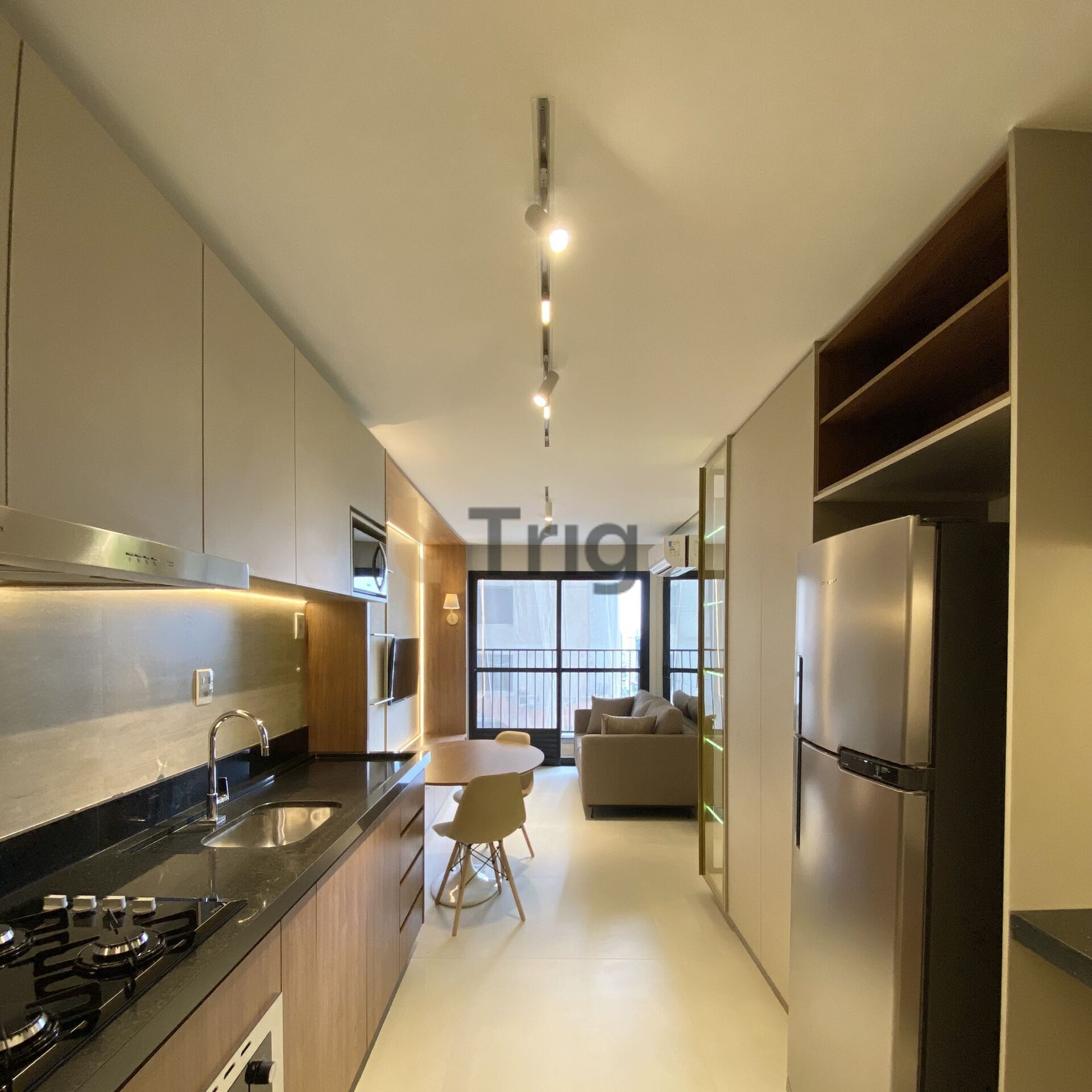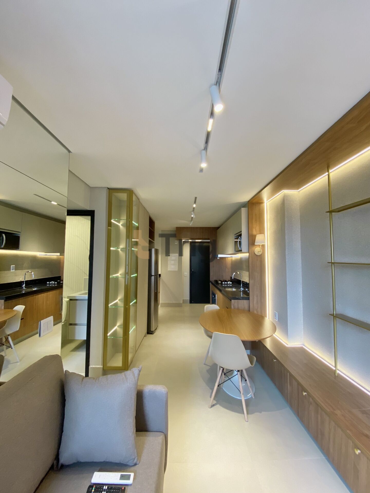 Apartamento mobiliado no HUB Compact Life, com 55 m², 1 suíte e 1 quarto, nunca habitado. Sala integrada com cozinha, projeto moderno com luminotécnico e marcenaria planejada.