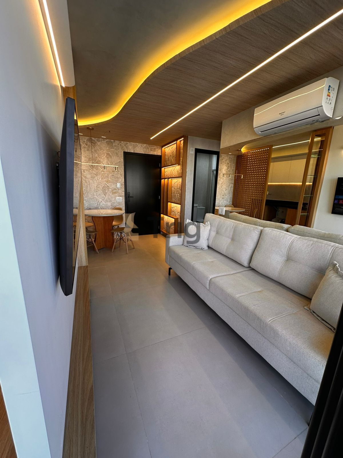 Apartamento mobiliado de 55 m² com planta funcional e bem distribuída, ambientes integrados e acabamento moderno, proporcionando conforto, praticidade e sofisticação. Conta com sala integrada à cozinha, marcenaria planejada e projeto luminotécnico — ideal para quem busca um imóvel completo e pronto para morar.